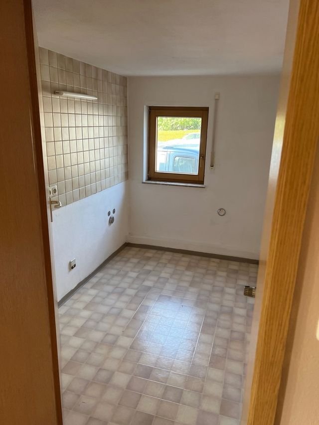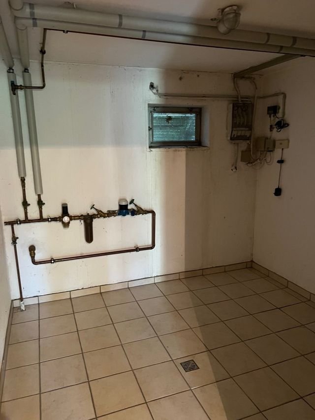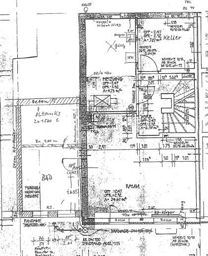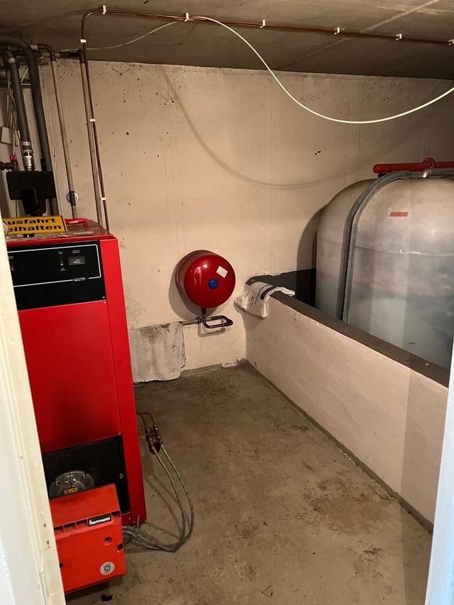 gr. Zimmer mit Zugang zur Terrasse, Bad (mit Fenster) mit Wanne und WC, Heizungs-/Waschraum, Kellerraum, Öltankraum