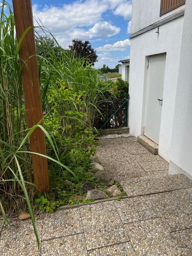 Zum Haus gehört ein kleiner, leicht zu pflegender Garten. Der Spitzboden ist
