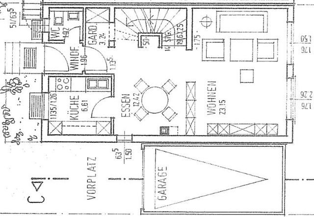 Windfang, Gäste-WC, Garderobe, Küche, Wohn-/Esszimmer, Balkon