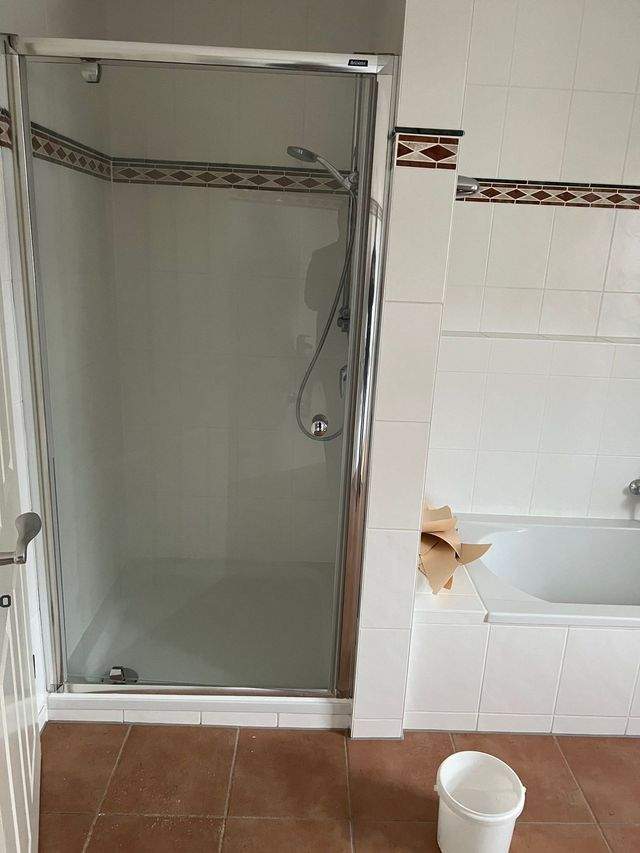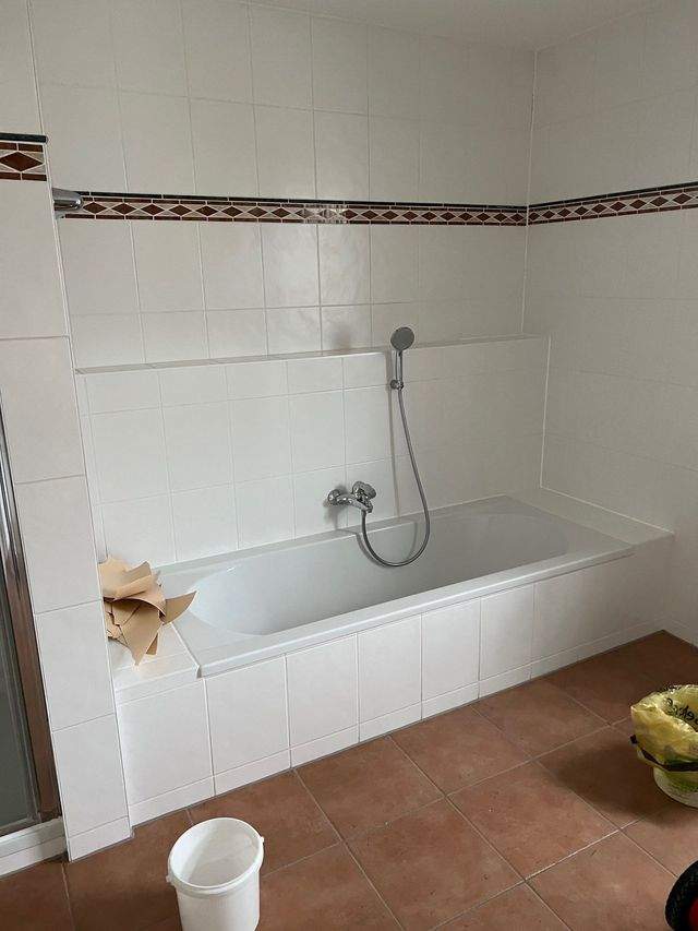 großes Bad (mit Fenster) mit Wanne, Dusche und WC