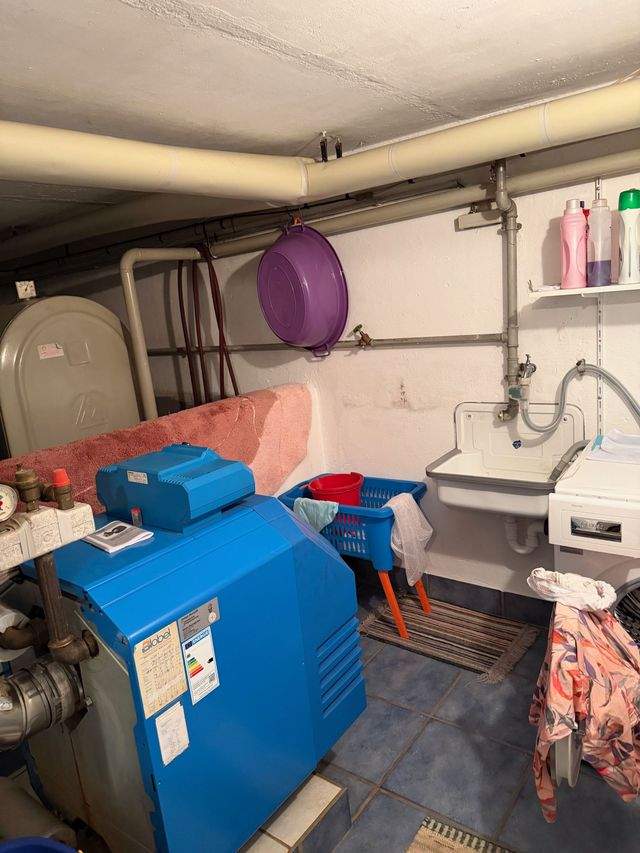 Heizungs-/Öllagerraum mit Waschbecken und Wasch-