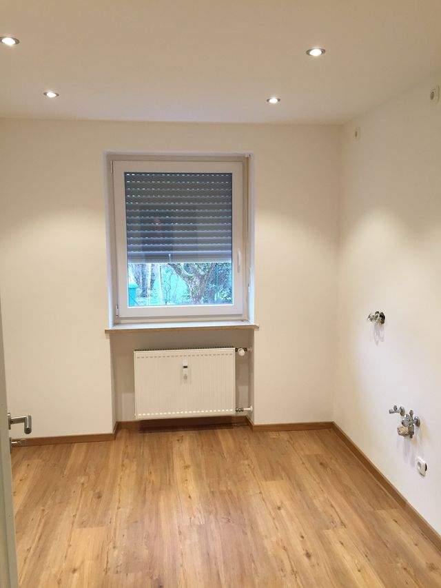 Einbauküche, einheitlicher Laminatboden in allen Räumen