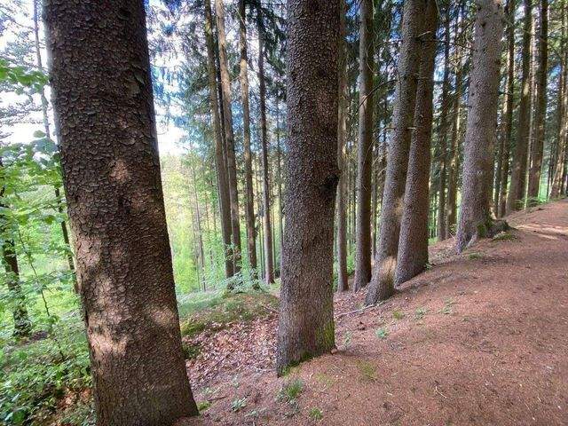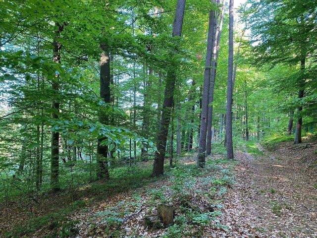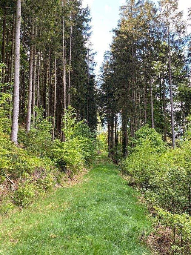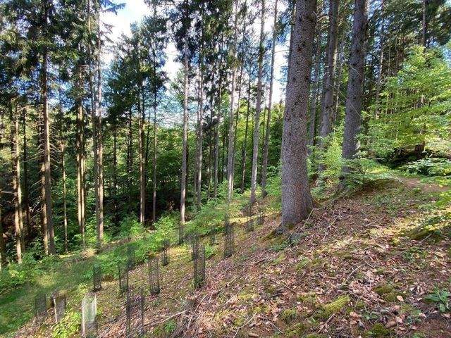 Den unteren Teil des Waldes erreicht man direkt im Anschluss an zwei Wiesen-/Baugrundstücke in nordwestlicher Richtung, welche ebenfalls erworben werden können.